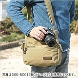 価格: 3,980円 ■サイズ: 外寸/W260×D140×H225mm 内寸/W230×D105×H200mm ■ベルト長:690〜1300mm ■材質: 表装/コットン(撥水加工)・PVC 内装/ナイロン ■重量:605g 軟らかいキャンバス地(厚手)を使ったショルダーバッグです。 カメラレンズ付本体だけでなくズームレンズなどのカメラレンズをもう1本収納できます。カメラやアクセサリーの固定に便利な仕切は、位置変更&取り外しが可能です。 カメラの収納スペースは、外部からの衝撃からしっかり保護するクッション材を使用しています。バッグの底面にはショックと汚れを防止